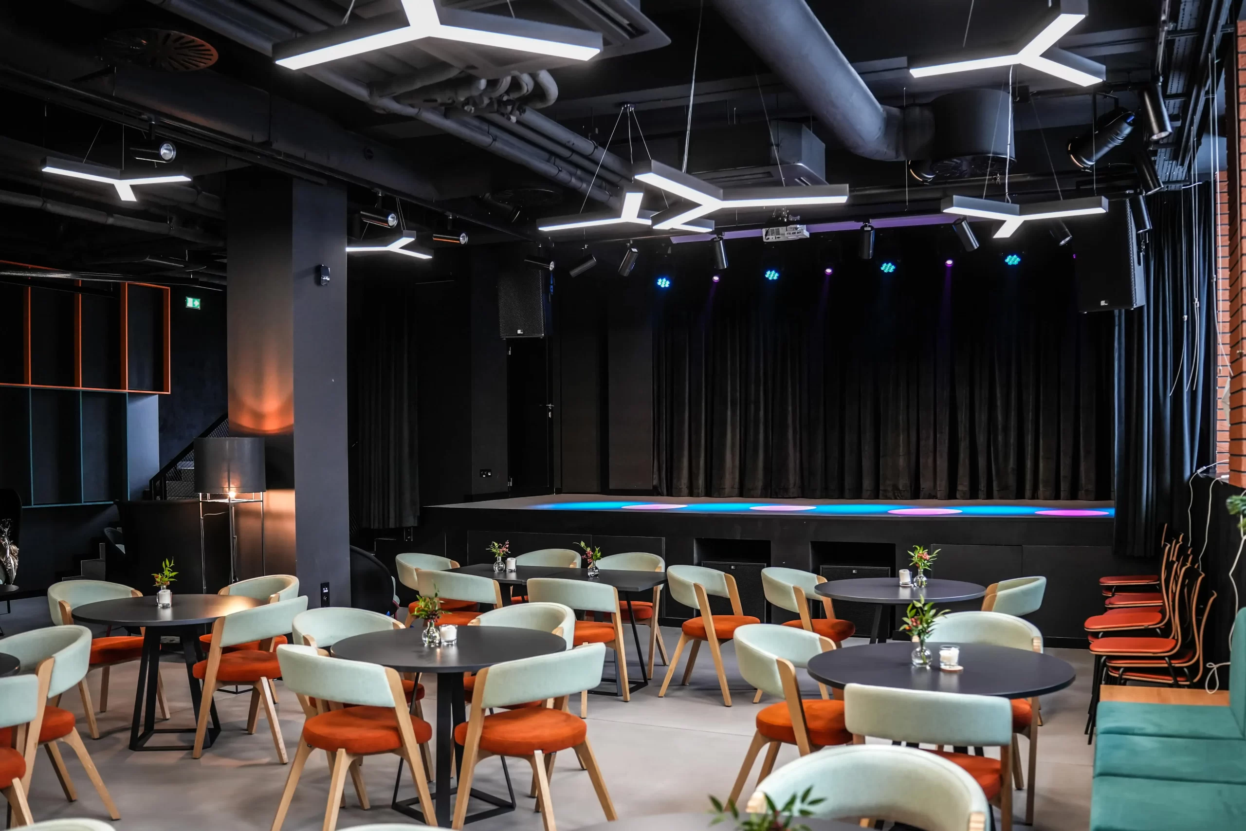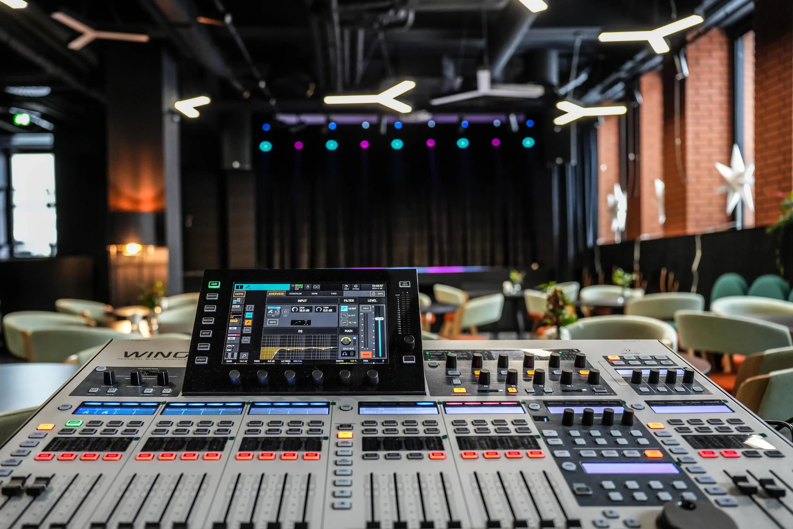 Subwoofery zostały umieszczone w specjalnie skonstruowanych niszach, dzięki czemu zredukowaliśmy emisję bardzo niskich częstotliwości do sceny, przy jednoczesnej, świetnej emisji tego pasma dla widowni. W efekcie jakość dźwięku na widowni jest bardzo wysoka a komfort pracy artystów – znakomity. Ze względu na wielkość sceny, zastosowaliśmy monitory podłogowe o bardzo niewielkich wymiarach, choć o dużej sprawności. Oprócz typowych monitorów podłogowych, do dyspozycji artystów są również tory bezprzewodowe odsłuchu indywidualnego, dousznego. Całość jest starannie wkomponowana w obiekt, praktycznie niezauważalna przez widzów.